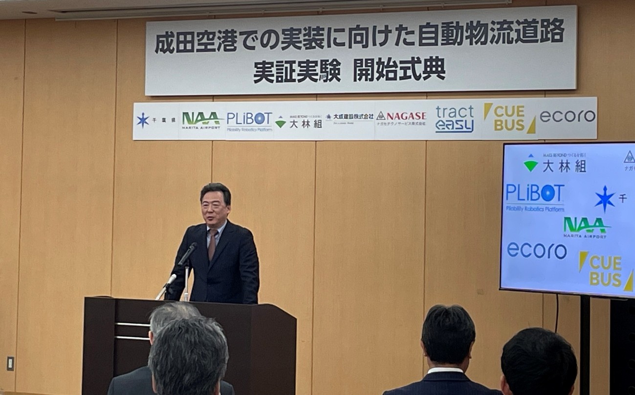 世界初のリニアモーター式ロボット倉庫「CUEBUS(キューバス)」を展開するCuebus株式会社(東京都台東区、代表取締役社長兼CEO:大久保 勝広、以下「Cuebus」)は、本日、千葉県および成田国際空港株式会社(以下「NAA」)により設立されたNRTエリアデザインセンター(以下「NADC」)が推進する成田空港「エアポートシティ」構想の一環として実施される「成田空港での実装に向けた自動物流道路実証実験」の開始式典に参加し、本実証への参画を正式に決定しました。